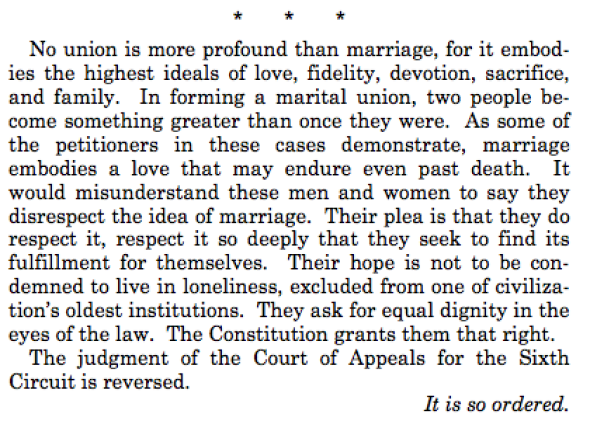 I also believe that today signifies a step forward towards the progression of human kindness, compassion and the progress towards recognizing humanity. Brother loves brother. Sister loves sister. Mother and fathers. Lovers and lovers. Friends with friends. Straight or gay, we are all capable of the same triumphs and evils towards one another. Thus, we are ALL CAPABLE OF THE SAME LOVE because we are HUMANS.